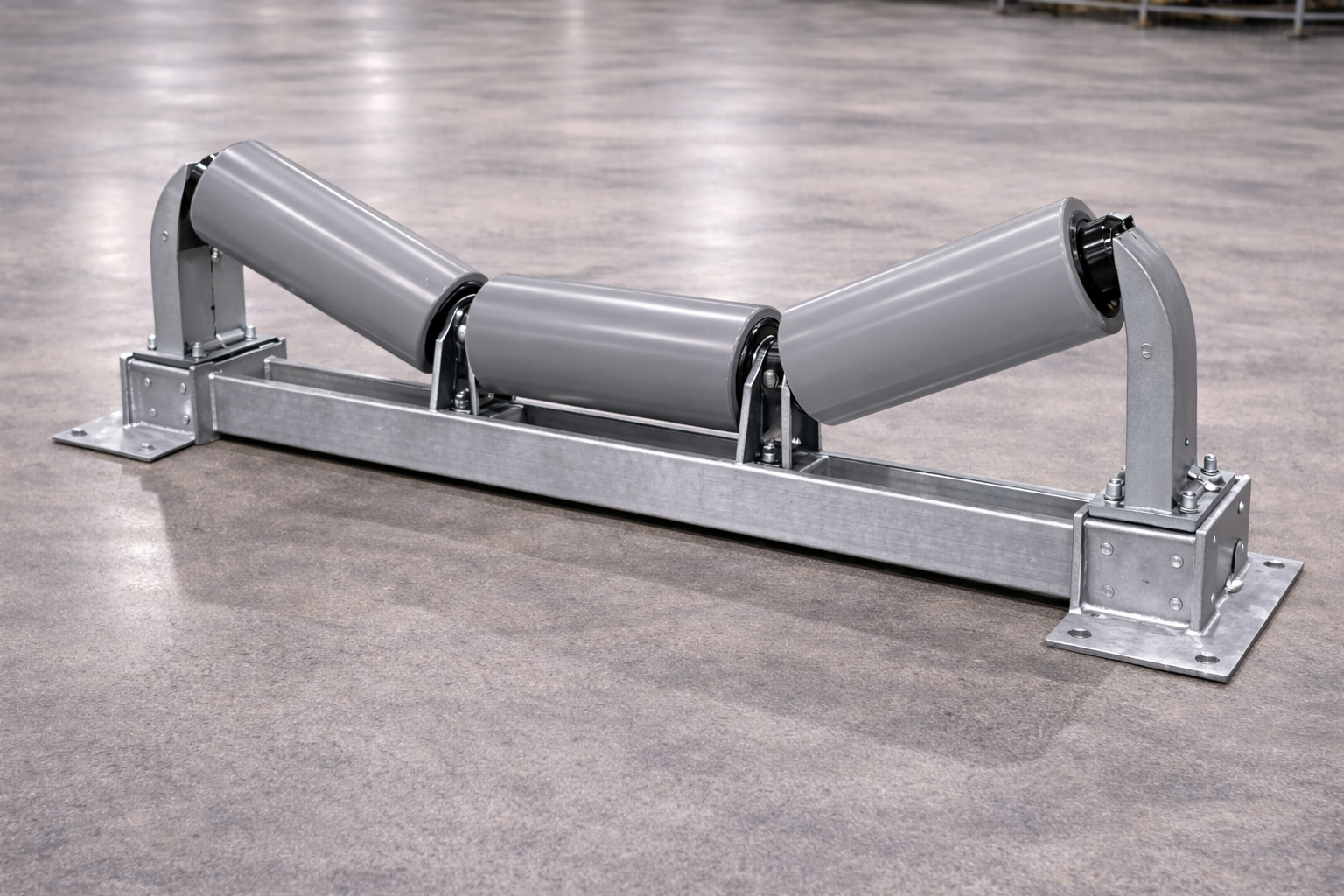 A Carrying Idler is a conveyor component used to support the loaded side of the conveyor belt, helping to carry bulk materials efficiently along the conveyor system.