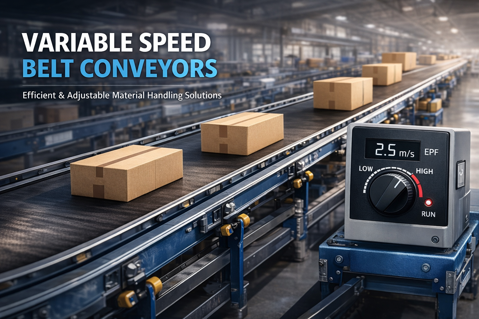 A Variable Speed Belt Conveyor is a conveyor system that allows the belt speed to be adjusted according to operational requirements. This flexibility helps optimize production flow, handle different product types, and integrate with other processes efficiently.